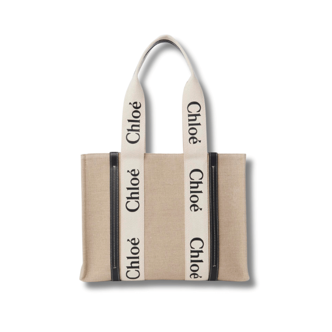 Tote bag in linen canvas & shiny calfskin with Chloé logo