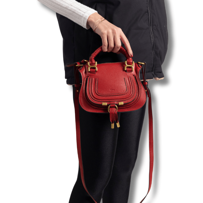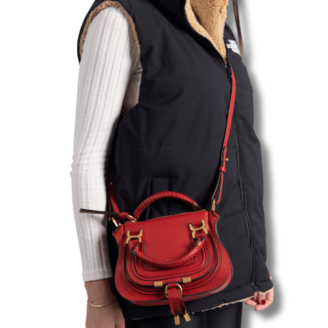 A more compact version of the iconic Marcie purse, this small double carry bag is crafted from grained calfskin. Clean lines and a contoured design enhance the slouchy silhouette, while hand-wrapped leather handles add crafty detail. The signature metallic buckles lend a refined finish. Double handles and a long, removable shoulder strap make this small double carry bag a truly versatile accessory.