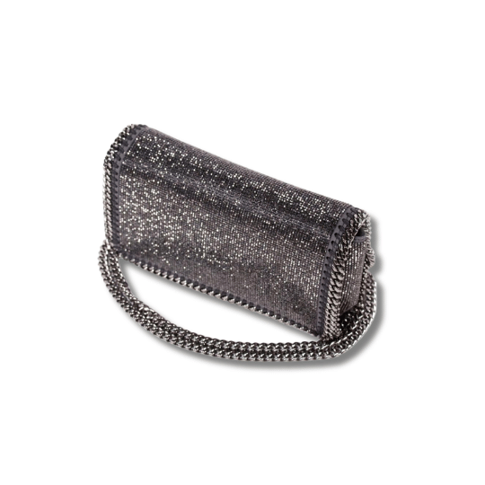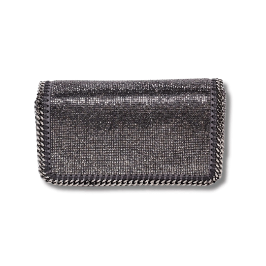 Grey And Silver Crystal Embellished Shoulder Bag / Silver-Tone Hardware / Crystal Adornments Throughout / Concealed Chain Shoulder Strap / Grey Fabric Lining At Interior / Single Internal Slit Pocket / Magnetic Snap Closure At Front Flap